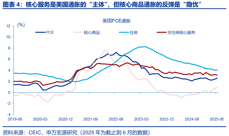 通胀方面,鲍威尔认为,关税引发的通胀是清晰可见的(clearly visible),但或是“一次性”的,提示短期内仍需密切关注传导、扩散和累积。鲍威尔认为,关税的通胀效应清晰可见,这主要表现为核心商品通胀持续反弹至正区间,并预计未来几个月继续累积,但其时间和幅度存在高度不确定性。基准情景是,关税的通胀效应是相对短暂的——即物价水平的一次性变动。当然,“一次性”并不意味着“一次完成”。关税上调需要时间传导至整个供应链和分销网络。此外,关税税率仍在不断变化,可能会延长调整过程。但鲍威尔认为,由于劳动力市场并不是特别紧张,通胀预期保持稳定,工资-物价螺旋难以形成,所以关税的通胀效应不太可能是持久的。