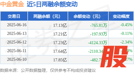 本站消息,6月16日,中金黄金(600489)融资买入7887.08万元,融资偿还8823.97万元嗨牛股票,融资净卖出936.89万元,融资余额17.07亿元。