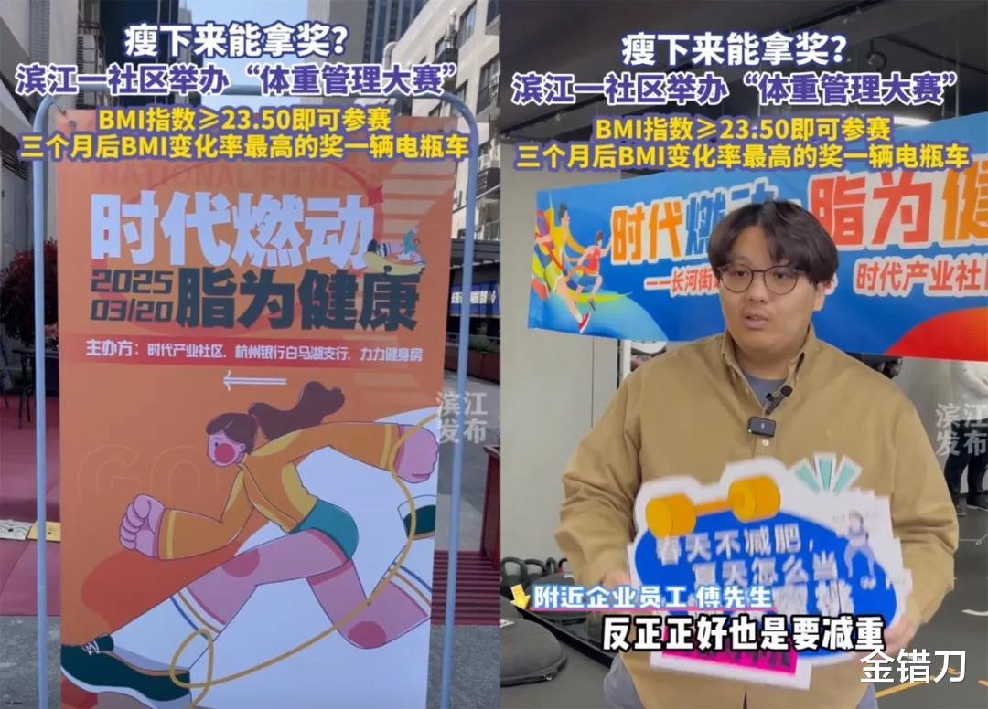 滨江一个社区举办的体重管理大赛,设置的奖品十分懂打工人:三个月后BMI变化最大的能带走一辆电动车。