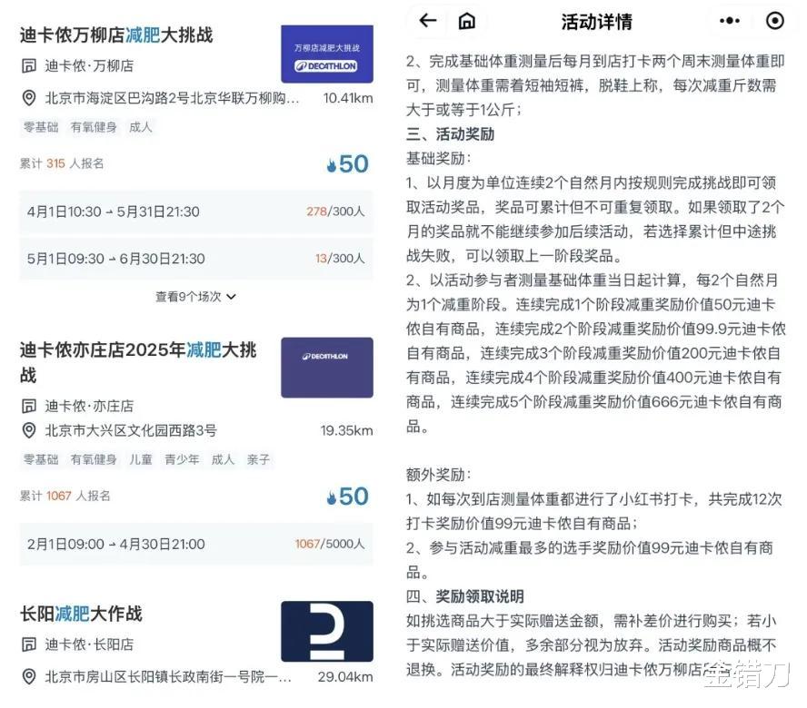 迪卡侬在全国门店举办活动,每减1公斤就能抽一次奖,一等奖价值1000元。